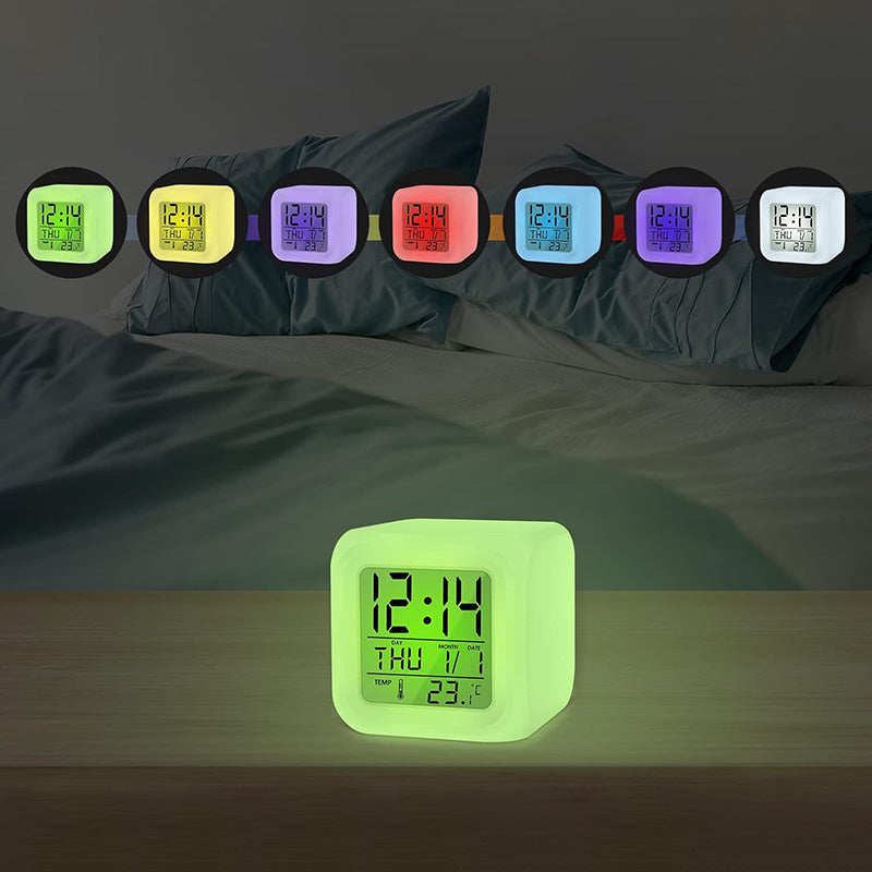 Budzik cyfrowy kostka zmieniający kolory – Twoje poranki w nowym świetle!