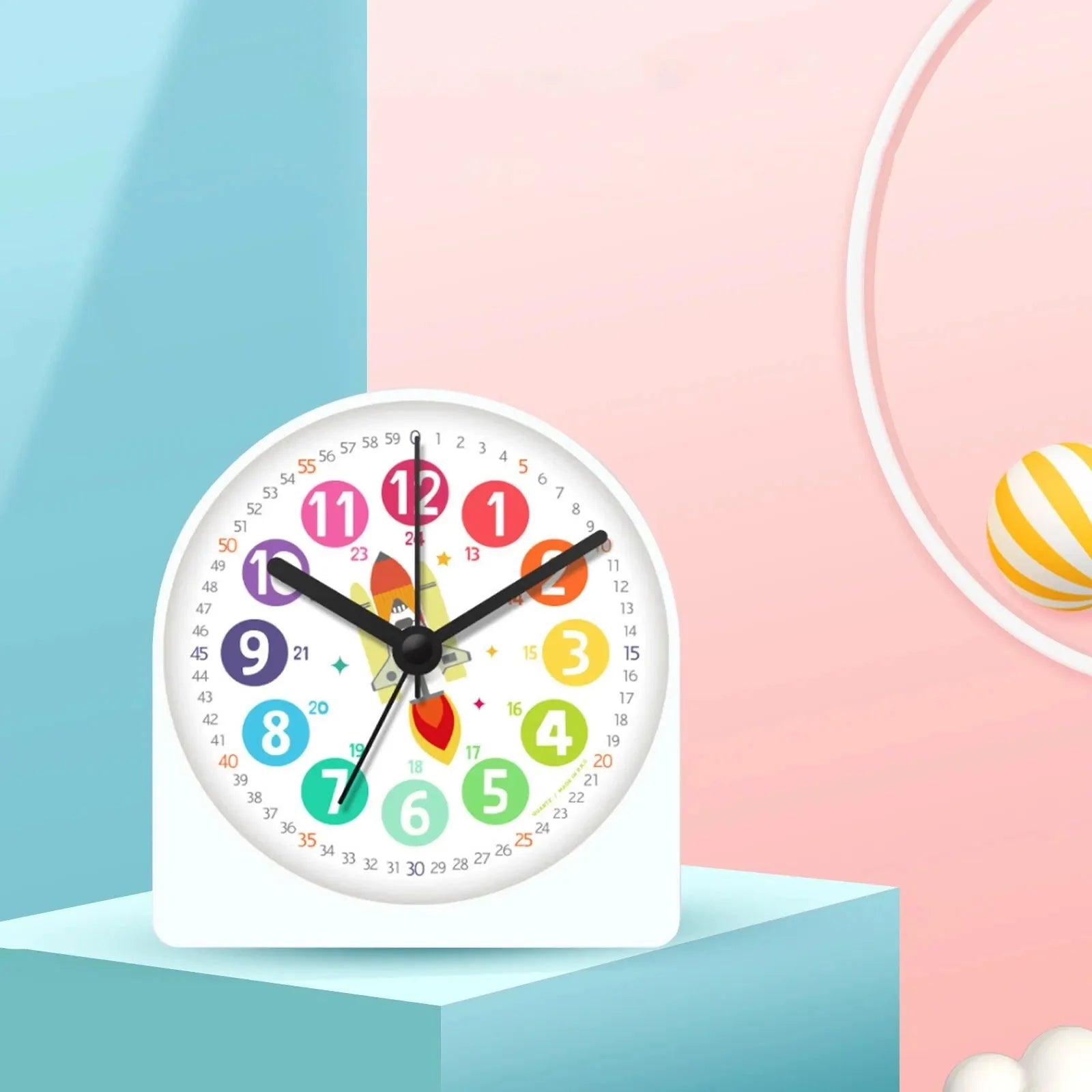 Zapomnij o nudnych i skomplikowanych zegarach! Nasz budzik edukacyjny został zaprojektowany z myślą o małych rączkach i szybko uczących się umysłach. Duże, kolorowe cyfry od 1 do 12 wyraźnie wskazują godziny, a mniejsze cyfry od 1 do 60 wokół tarczy ułatwiają naukę minut. Dodatkowo, w środku tarzy znajdziesz również cyfry 13-24, co pozwala na łatwe zrozumienie 24-godzinnego formatu czasu. Całość uzupełnia dynamiczna grafika startującej rakiety, która pobudza wyobraźnię i sprawia, że każda minuta staje się częścią kosmicznej misji. To idealne narzędzie, by Twoje dziecko z radością opanowało sztukę odczytywania godzin, rozwijając jednocześnie samodzielność i ciekawość świata.