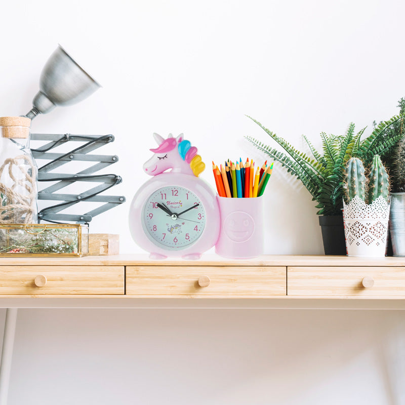 Podaruj Radość i Porządek z Budzikiem Jednorożec z Pojemnikiem na Kredki!