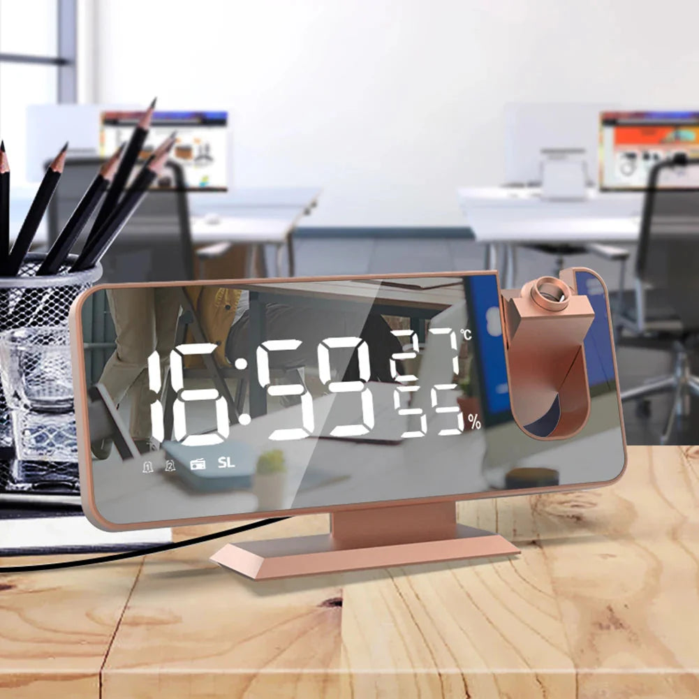 Odkryj elegancję i funkcjonalność naszego Budzik z projektorem różowe złoto. Zaprojektowany, aby uprzyjemnić Twoje poranki i rozpocząć dzień ze stylem, łączy wyrafinowany design z codzienną praktycznością.