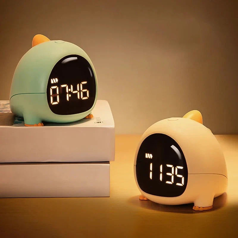 Szukasz idealnego sposobu, aby Twoje dziecko pokochało wstawanie rano? Nasz uroczy cyfrowy budzik dinozaur dla dzieci to nie tylko praktyczne urządzenie, ale też fantastyczny element wystroju pokoju malucha. Ten przyjazny dinozaur o delikatnych, kremowych barwach i pomarańczowych akcentach został zaprojektowany z myślą o małych śpiochach, by każde rano było pełne radości i bezstresowe. Wyraźny wyświetlacz cyfrowy sprawia, że odczytywanie godziny jest dziecinnie proste, pomagając dzieciom w nauce punktualności i niezależności. To więcej niż zwykły budzik – to towarzysz, który wprowadza porządek w codzienne rytuały w najsympatyczniejszy możliwy sposób.