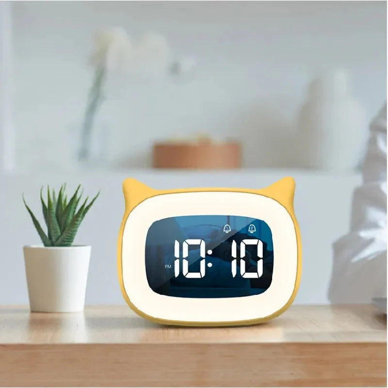 Czy Twoje dziecko ma trudności z wstawaniem rano, a wieczorem boi się ciemności? Przedstawiamy Cyfrowy budzik dla dzieci lampka nocna – rozwiązanie, które pokochają zarówno maluchy, jak i ich rodzice! Ten uroczy budzik o kształcie przypominającym sympatycznego kotka nie tylko pomoże Twojemu dziecku nauczyć się samodzielności w budzeniu się, ale także zapewni mu poczucie bezpieczeństwa dzięki delikatnemu światłu nocnemu. Koniec z trudnymi porankami i nocnymi lękami! Nasz cyfrowy budzik został zaprojektowany z myślą o małych użytkownikach – jest intuicyjny w obsłudze, a jego wyraźny wyświetlacz pokazuje godzinę w prosty i czytelny sposób, nawet w półmroku.