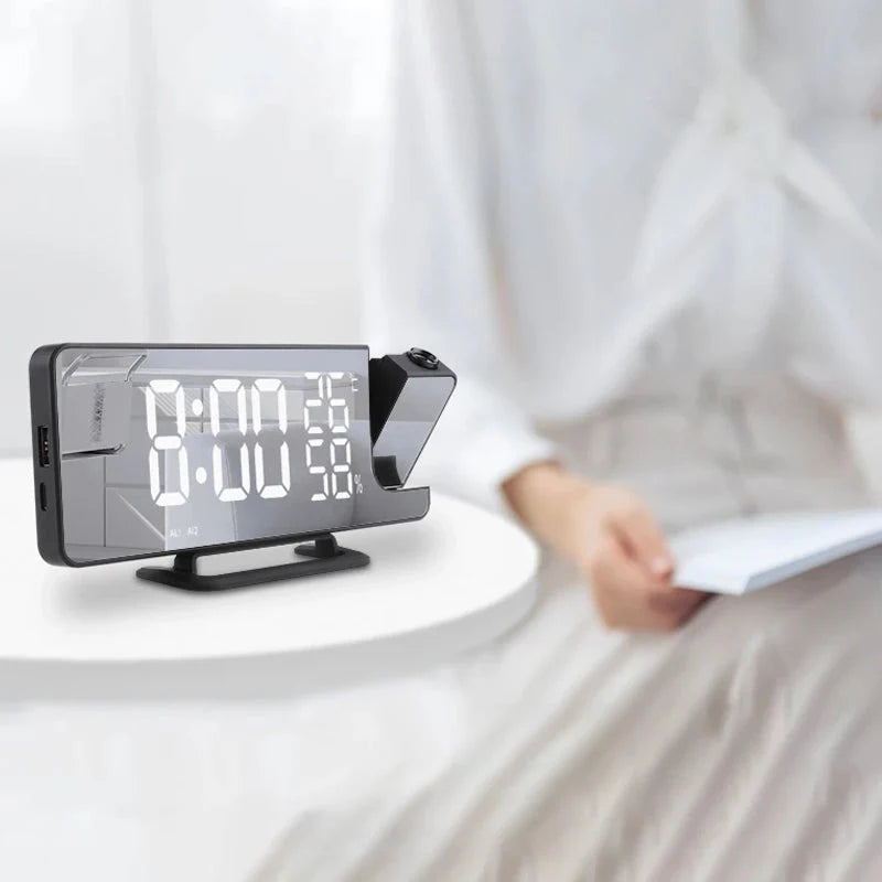 Obudź się stylowo z naszym Czarnym lustrzanym budzikiem z projektorem!
