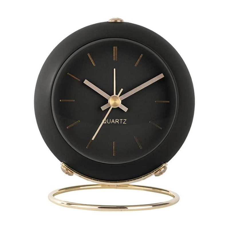 Ten wyjątkowy czarny okrągły budzik w stylu retro to coś więcej niż tylko urządzenie do budzenia. To element, który wprowadzi do Twojej przestrzeni nutę elegancji i nostalgii. Jego wyraźny, ale nie drażniący dzwonek delikatnie wyrwie Cię ze snu, sprawiając, że każdy poranek będzie przyjemniejszy. Złote wskazówki i indeksy na czarnej tarczy są nie tylko piękne, ale także bardzo czytelne, co ułatwia sprawdzenie godziny nawet w półmroku. Solidna konstrukcja i precyzyjny mechanizm kwarcowy gwarantują długotrwałe i bezproblemowe użytkowanie. Dzięki niemu, poranki staną się mniej stresujące, a Twoja sypialnia zyska niepowtarzalny urok. To inwestycja w dobry styl i punktualność, która z pewnością się opłaci.