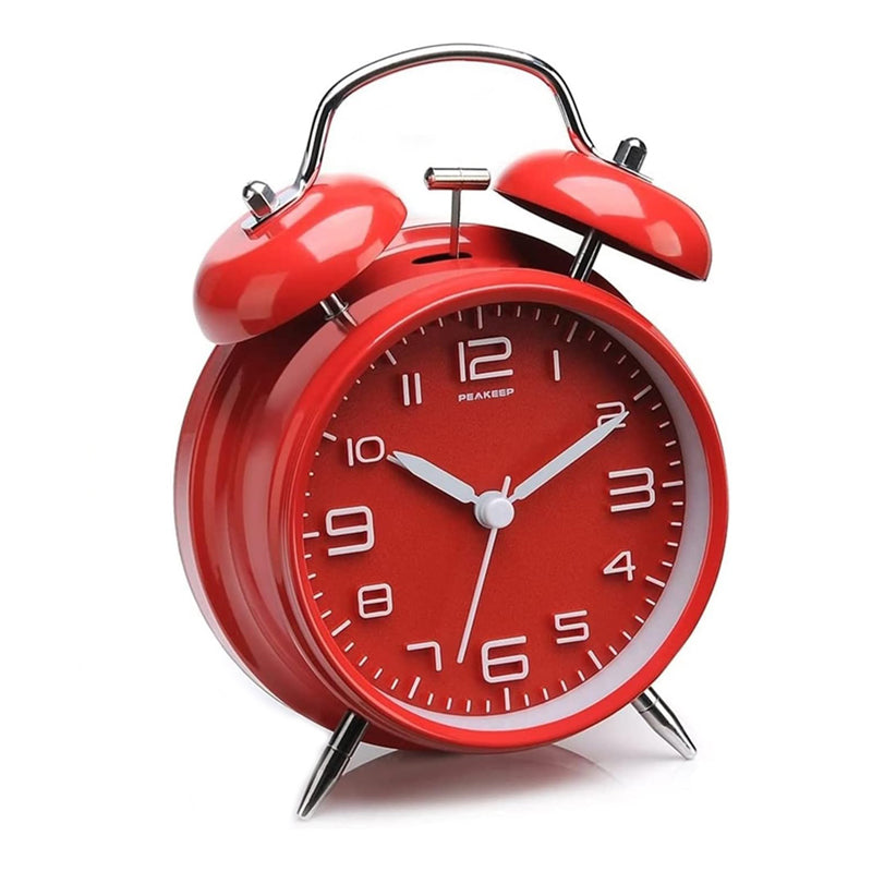 Czerwony budzik retro z podwójnym dzwonkiem – Twój Styl Przebudzenia