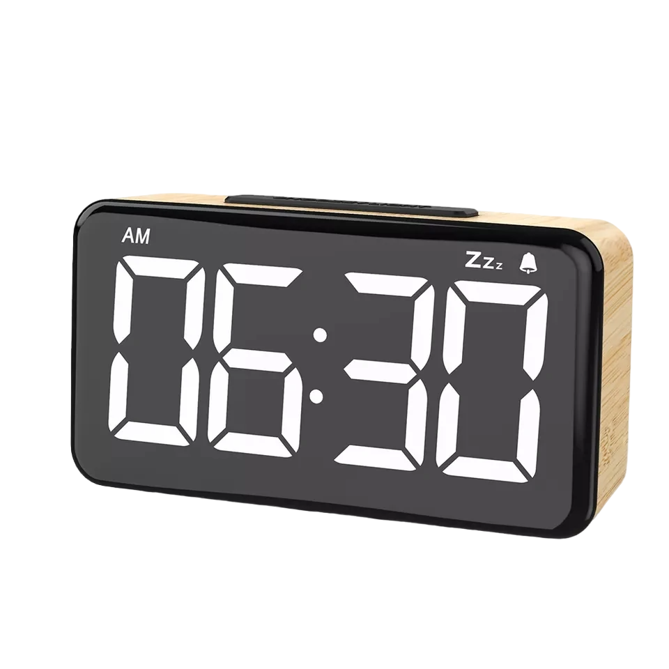 Uprość swoje poranki z naszym Drewnianym budzikiem LED z dużymi cyframi!