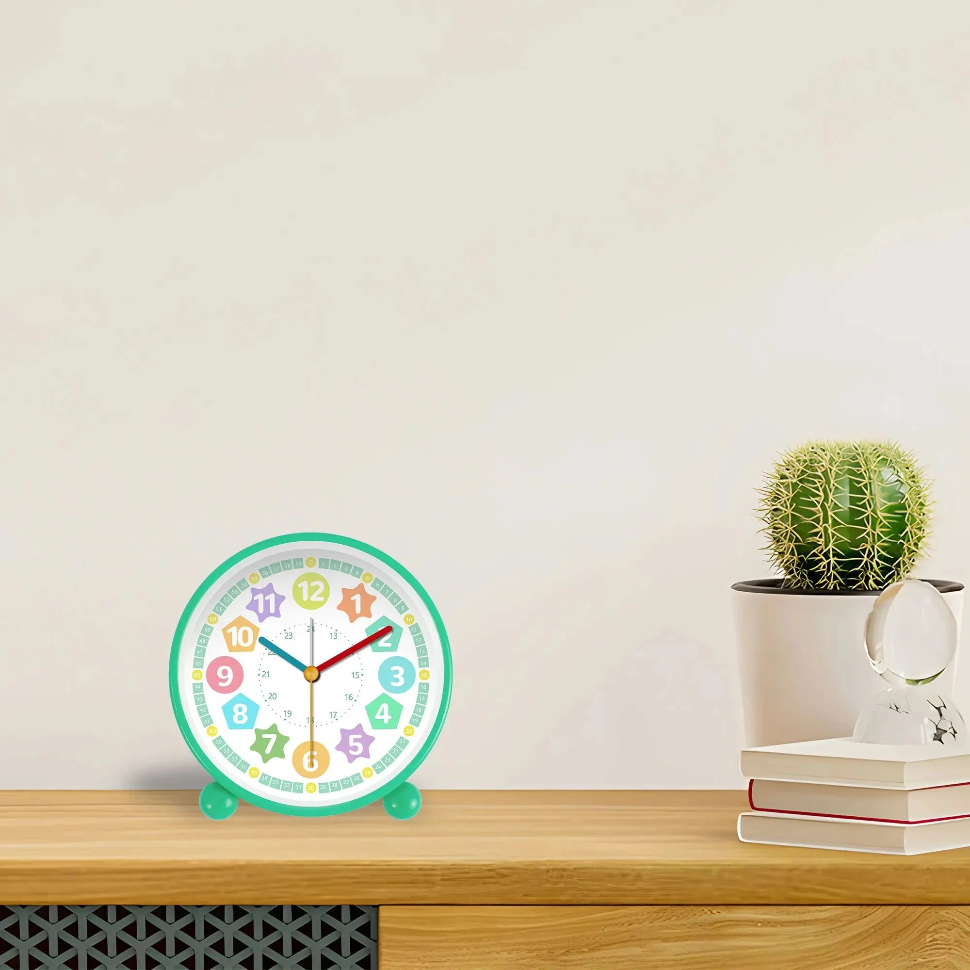 Ten wyjątkowy edukacyjny budzik został stworzony, aby wspierać samodzielność i ciekawość. Kolorowa tarcza z wyraźnymi podziałkami minutowymi (co 5 minut) oraz wewnętrznymi cyframi dla formatu 24-godzinnego sprawia, że każde spojrzenie na zegar jest okazją do nauki. Koniec z frustracją i skomplikowanymi wyjaśnieniami! Nasz budzik wizualnie ułatwia dziecku powiązanie ruchu wskazówek z upływem czasu, budując solidne podstawy do zrozumienia harmonogramu dnia. To nie tylko narzędzie edukacyjne, ale także uroczy element dekoracyjny, który doskonale wpasuje się w wystrój każdego dziecięcego pokoju, zachęcając do codziennej interakcji i nauki przez zabawę.