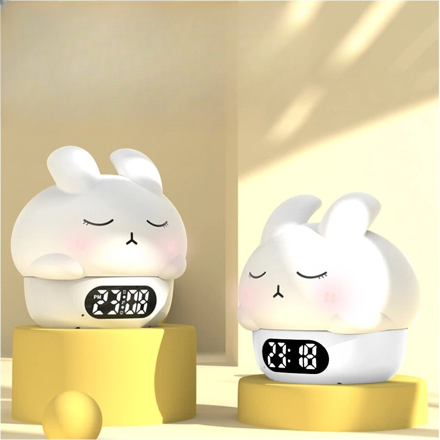 Odkryj elegancję i funkcjonalność naszego Lampka nocna budzik króliczek dla malucha. Zaprojektowany, aby uprzyjemnić Twoje poranki i rozpocząć dzień ze stylem, łączy wyrafinowany design z codzienną praktycznością.