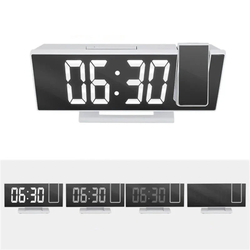 Poczuj komfort z naszym Lustrzanym budzikiem z projektorem białym