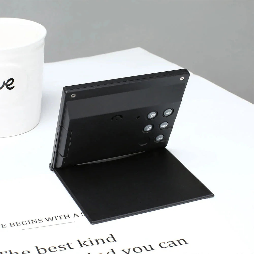 Odkryj elegancję i funkcjonalność naszego Mały składany budzik cyfrowy podróżny. Zaprojektowany, aby uprzyjemnić Twoje poranki i rozpocząć dzień ze stylem, łączy wyrafinowany design z codzienną praktycznością.