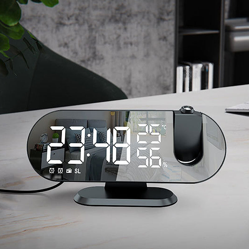 Wybierając nasz Radiobudzik z projektorem lustrzany na sufit, inwestujesz w komfort i nowoczesność. Jego unikalny, lustrzany wyświetlacz nie tylko prezentuje godzinę w wyraźnych, dużych cyfrach, ale także dodaje elegancji Twojej sypialni. Zapomnij o oślepiającym świetle telefonu w środku nocy – dzięki funkcji projekcji, godzina delikatnie wyświetli się na suficie lub ścianie, zawsze tam, gdzie będzie Ci najwygodniej, nawet pod kątem 180 stopni! Dodatkowo, budzik monitoruje temperaturę i wilgotność w pomieszczeniu, dając Ci pełną kontrolę nad klimatem Twojego snu. A co powiesz na przebudzenie przy dźwiękach ulubionej stacji radiowej? Ten budzik ma to wszystko, oferując Ci nie tylko precyzyjne wskazanie czasu, ale i wiele więcej, aby Twój dzień zaczynał się idealnie.