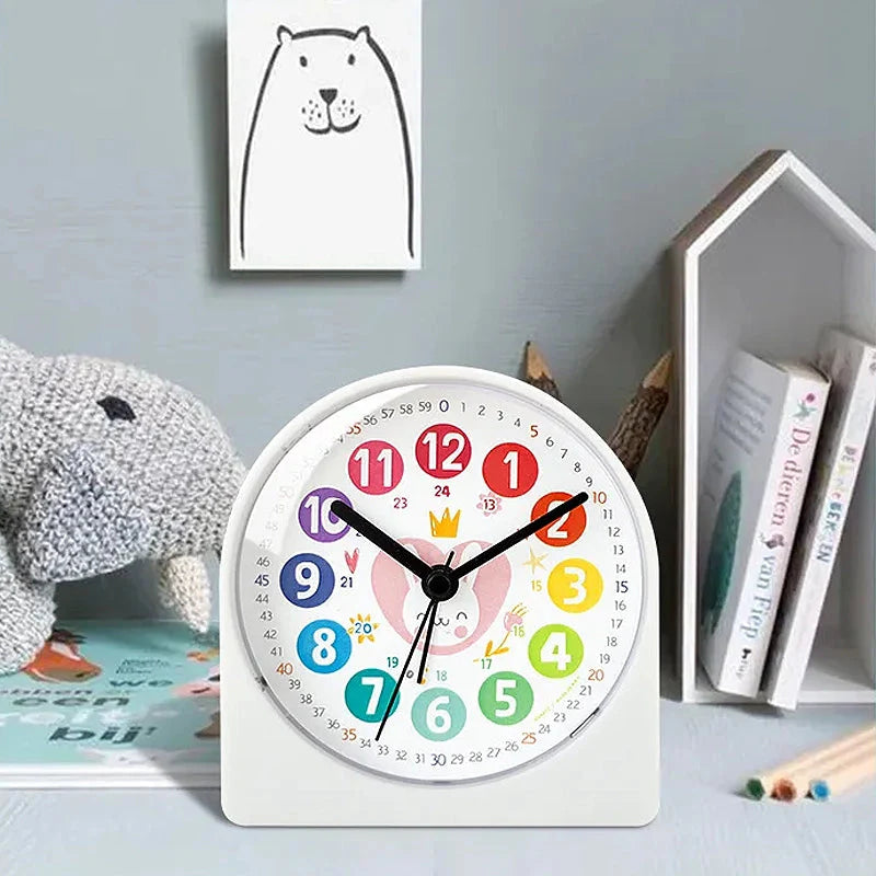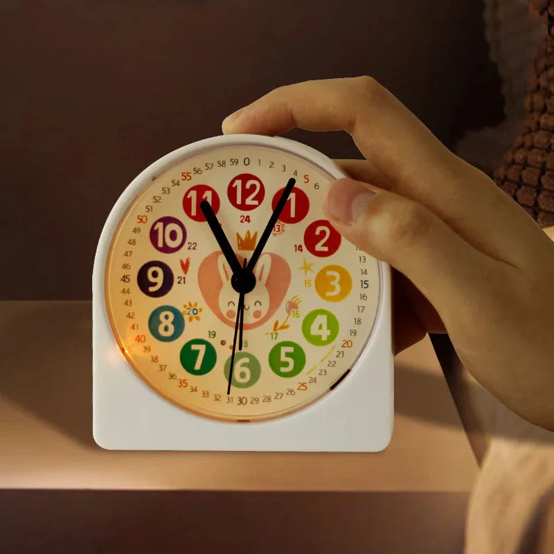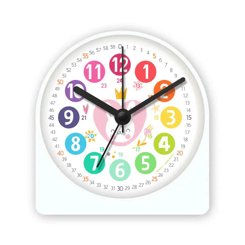 Wybór odpowiedniego zegara do nauki dla dziecka to ważna decyzja, która może znacząco wpłynąć na jego rozwój. Nasz różowy budzik edukacyjny królik dla dziewczynki wyróżnia się przemyślanym designem, który aktywnie wspiera rozwój poznawczy i samodzielność. Tarcza zegara jest celowo zaprojektowana z dużymi, wyraźnymi cyframi dla godzin (1-12) oraz mniejszymi, ale równie czytelnymi cyframi dla minut (0-59), co pozwala dziecku bez trudu rozróżniać wskazania. Dodatkowo, obok głównych godzin, znajdują się również cyfry odpowiadające formatowi 24-godzinnemu (13-24), co uczy malucha kompleksowego rozumienia czasu. Solidna konstrukcja i brak ostrych krawędzi zapewniają bezpieczeństwo użytkowania, a uroczy motyw królika z sercem i koroną sprawia, że budzik staje się ulubioną ozdobą pokoju i inspiracją do nauki.