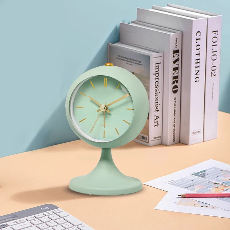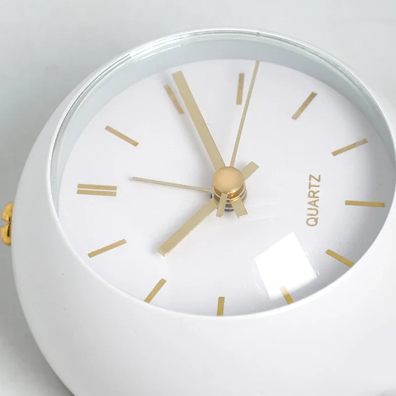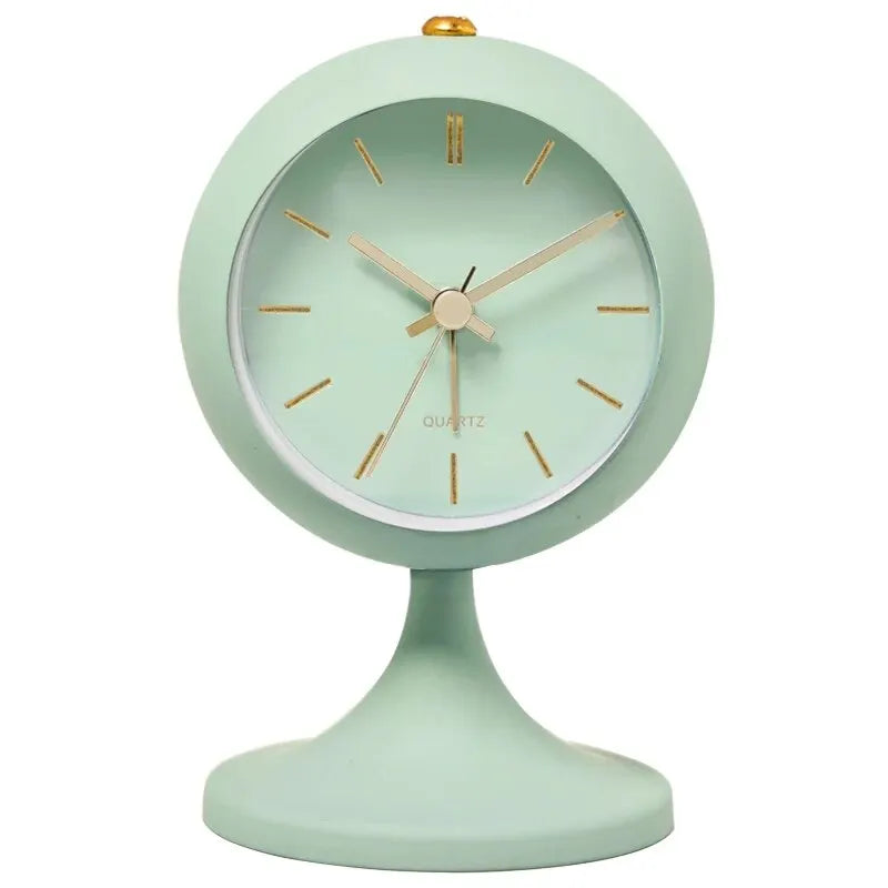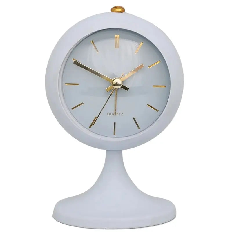 Ten stylowy budzik retro na stojaku wyróżnia się na tle innych przede wszystkim swoim unikalnym wyglądem. Okrągła tarcza w czystym, białym kolorze, ozdobiona złotymi wskazówkami i indeksami godzinowymi, promienieje subtelnym luksusem. Stabilna podstawa sprawia, że budzik stoi pewnie, niezależnie od powierzchni, a jej elegancki kształt dodaje całości lekkości i wyrafinowania. Ale to nie tylko wygląd! W sercu tego budzika drzemie precyzyjny mechanizm kwarcowy, który gwarantuje niezawodność i cichą pracę – koniec z irytującym tykaniem, które zakłóca sen. Dzięki temu możesz cieszyć się spokojnym odpoczynkiem i budzić się bez stresu, podziwiając jego piękno zaraz po otwarciu oczu.