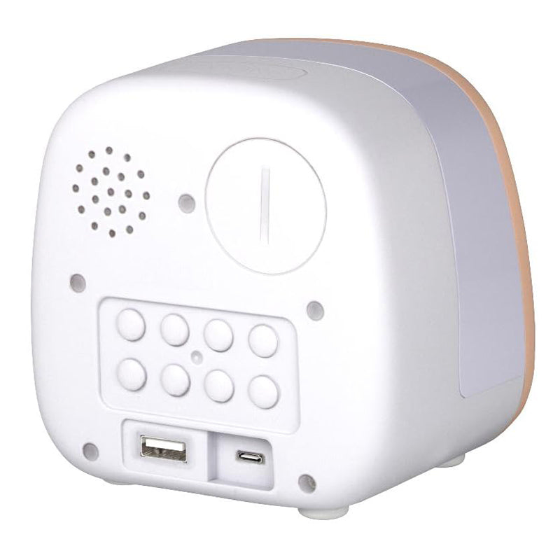 - Intuicyjny wyświetlacz z grafiką: Przyjazna buźka, słońce i chmurki na ekranie jasno komunikują, czy jest to pora na wstawanie czy jeszcze na spanie, czyniąc go doskonałym Trenerem snu dla dziewczynki z budzikiem.